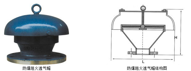 防爆阻火透氣帽是保證加油站、油罐等透氣安全的重要配套設(shè)備。當(dāng)油罐料膨脹或進油時,即通過阻火芯波紋板向外排氣。當(dāng)油罐內(nèi)向外放油時又向罐內(nèi)吸氣,并阻止和杜絕一切火源從此通過,確保油罐安全。
