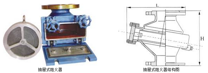 抽屜式阻火器是安裝在原油、汽油、煤油、柴油、甲苯、輕質(zhì)油等固定頂式儲(chǔ)油罐上的重要安全設(shè)備。抽屜式阻火器通常與呼吸閥配套使用,也可適用內(nèi)浮頂式油罐的通氣管上, 它的功能是允許易燃易爆氣體通過(guò),對(duì)火焰有阻止窒息作用,從而保護(hù)儲(chǔ)罐安全。