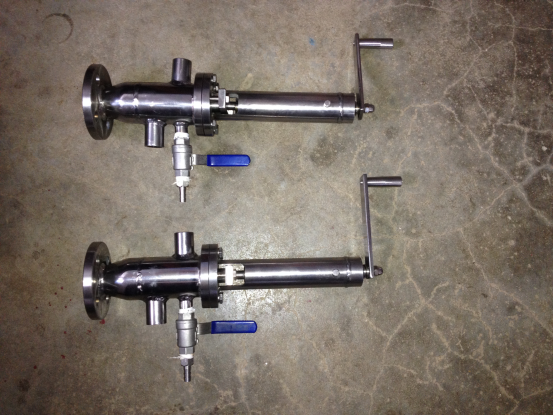 HCYL-LC型在線式采樣器,主要由應(yīng)急閥、傳動(dòng)絲桿、閥體、夾套、絲桿支架、手柄、柱塞、出液管、密封組件、聯(lián)接法蘭(可不用)等組成。由于柱塞貫穿于閥體及聯(lián)接法蘭中,保證了每次采樣時(shí)不排殘液(氣) ,也消除了凝堵的因素。已成功為多家中石化、中石油企業(yè)的原油、蠟油、硫磺采樣做了技術(shù)整改。