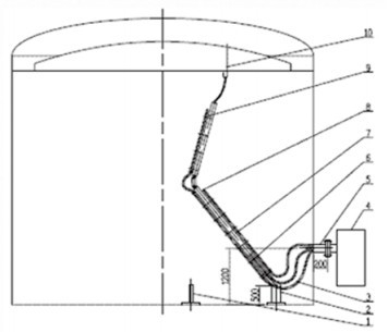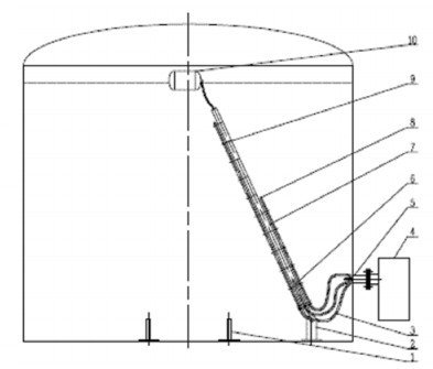 拱頂罐:把浮球固定在采樣管線上,較小的浮球固定在采樣管線中部,較大的浮球連接在采樣管線梢部。