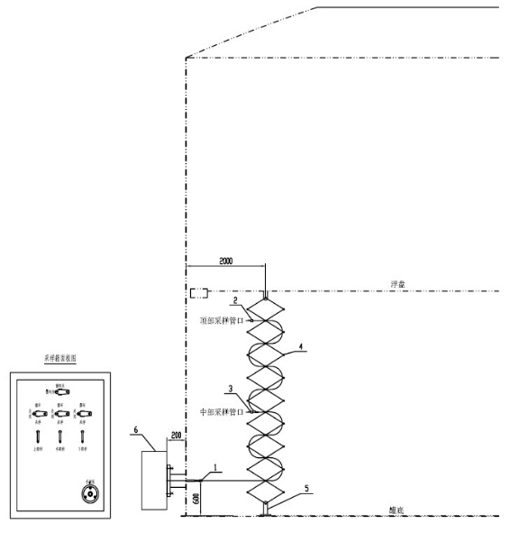 2、HCYSA-II型系列產(chǎn)品是利用內(nèi)浮頂罐內(nèi)浮盤(pán)帶動(dòng)的采樣管裝置(見(jiàn)圖二)