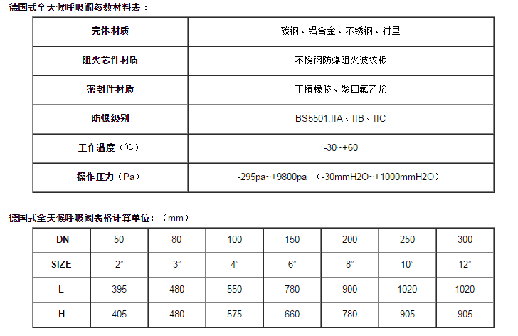 1、我廠承接各種非標壓力德國式全天候(防爆阻火)呼吸閥;2、訂貨時請注明口徑、材質、壓力及數(shù)量等。