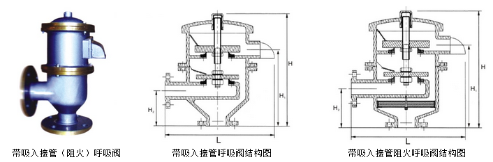 帶吸入接管阻火呼吸閥是安裝在固定頂罐上的通風(fēng)裝置,起減少油品蒸發(fā)損耗,控制儲罐壓力及阻止外界火焰?zhèn)魅氲淖饔。帶吸入接管呼吸閥具有通風(fēng)量大,泄漏量小,耐腐蝕等特點,并有靜電接地線,使呼吸閥與罐體保持電位。目前我公司在帶吸入接管呼吸閥容易產(chǎn)生靜電的部位,做了技術(shù)改進(jìn)添加了聚四氟乙烯墊片所以不需要接靜電排放裝置。