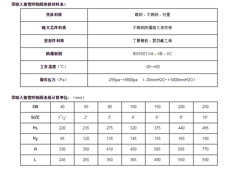 訂貨須知:1、我廠承接各種非標(biāo)壓力帶吸入接管呼吸閥;