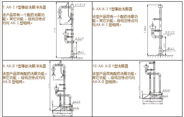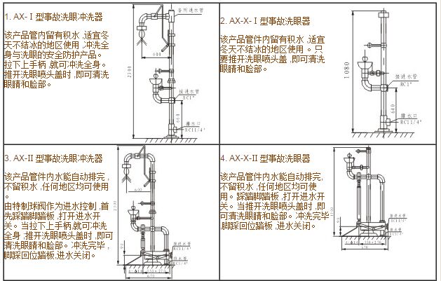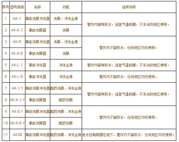 AX型系列安全事故洗眼沖洗器產(chǎn)品名稱及型號(hào)規(guī)格表