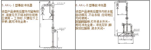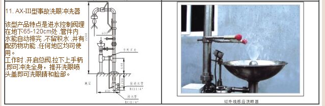 2、使用沖洗噴頭時(shí),只用把上管路球閥轉(zhuǎn)接手柄(即件15沖洗手柄)往開的方向推,即可站立沖洗全身。傷者在經(jīng)20~30分鐘沖洗期間,應(yīng)準(zhǔn)備其它急救措施。